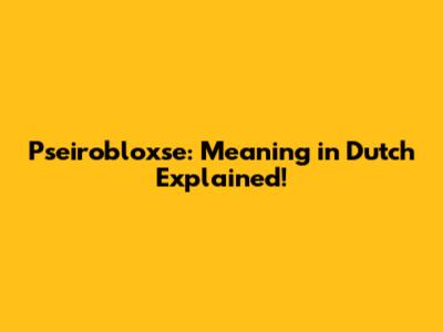Pseirobloxse: Meaning In Dutch Explained!